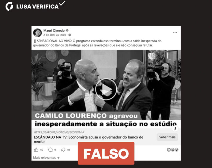 Álvaro Santos Pereira, governador do Banco de Portugal (BdP), não abandonou um programa da SIC nem o jornalista Camilo Lourenço divulgou um negócio milionário com um reduzido investimento inicial, como afirma um anúncio fraudulento nas redes.