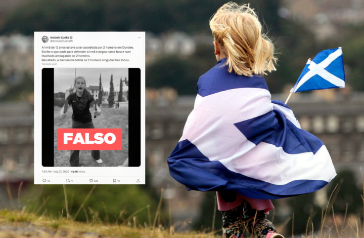 Lisboa, 29 ago 2025 (Lusa Verifica) – A polícia escocesa alerta para a desinformação em torno do vídeo da rapariga de 12 anos que empunha uma faca e um machado alegadamente para defender-se de imigrantes islâmicos, uma narrativa falsa amplificada pela extrema-direita, incluindo em Portugal.